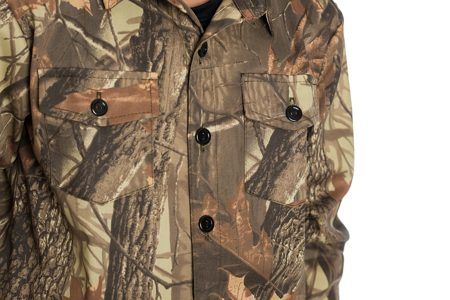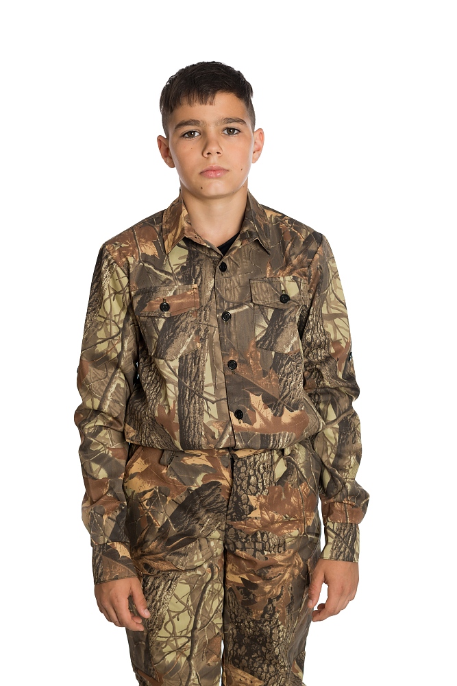 Детска ловна риза с навиващи се ръкави модел ЛЕДА, изработен от плат 50 /50 П/ПЕ камуфлаж, подходяща за лов от пролетта до есента. Дизайна предлага удобство по време на лов, като следва естественото движение на тялото .