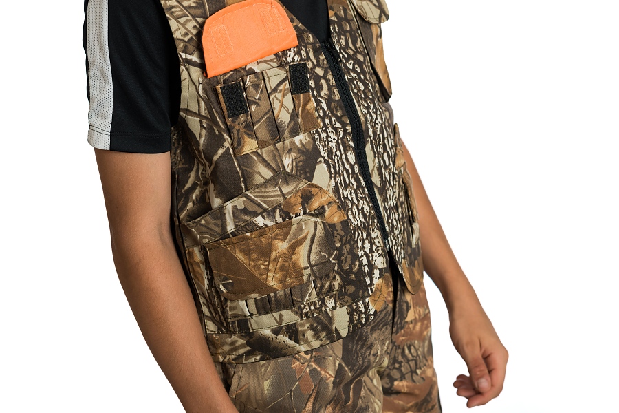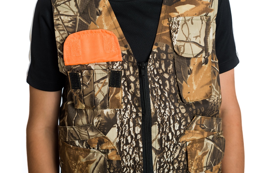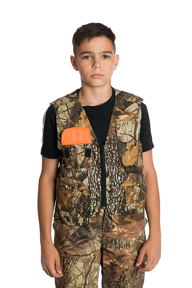 Детски ловен елек модел ЛЕДА, изработен от плат 50 /50 П/ПЕ камуфлаж, с подплата от хастар, подходящ за лов от пролетта до есента. Дизайна предлага удобство по време на лов, като следва естественото движение на тялото .