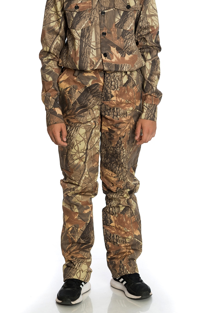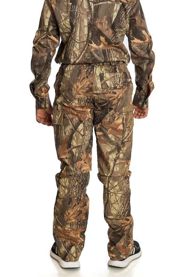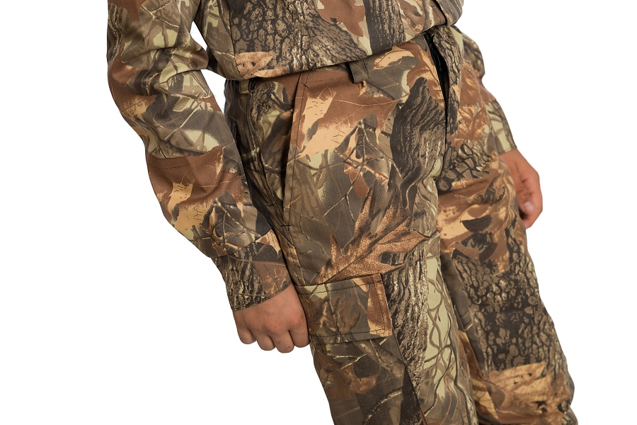 Детски ловен панталон, изработен от плат хидрофобиран 50 /50 П/ПЕ камуфлаж, с топла ватирана подплата, изработен от капитонирана двулицева вата /120 гр./ с двоен спун бонд, подходящ за лов през цялата година. Дизайна предлага удобство по време на лов, като следва естественото движение на тялото .