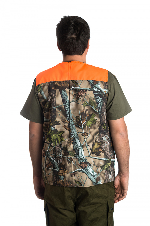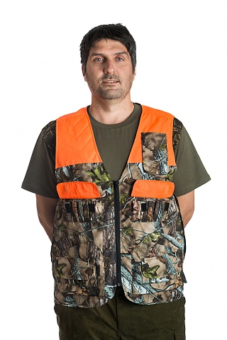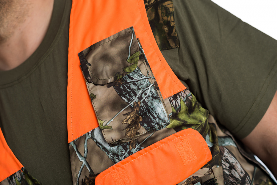 Ловен елек модел ЛЕДА, изработен от плат камуфлаж, с подплата от хастар, подходящ за лов от пролетта до есента. Дизайна предлага удобство по време на лов, като следва естественото движение на тялото.