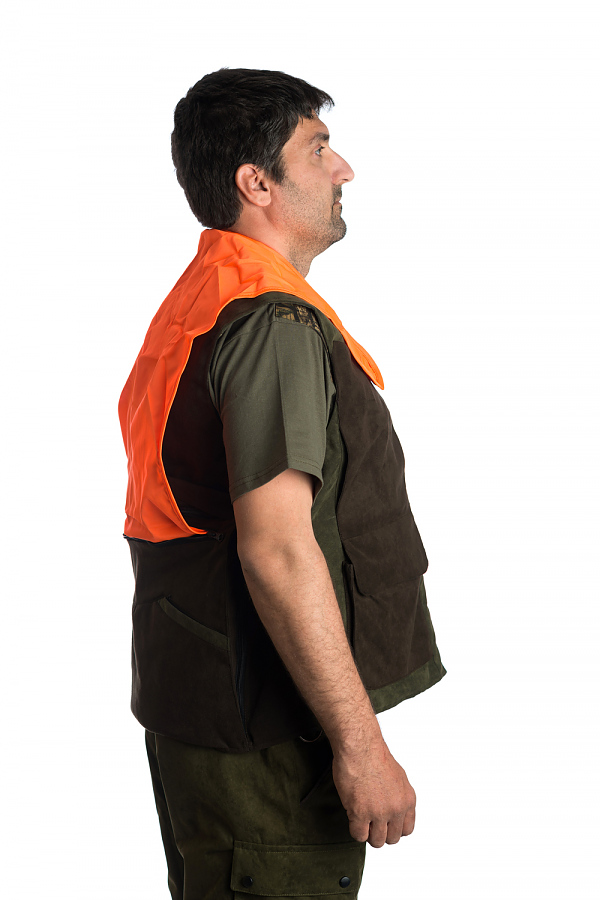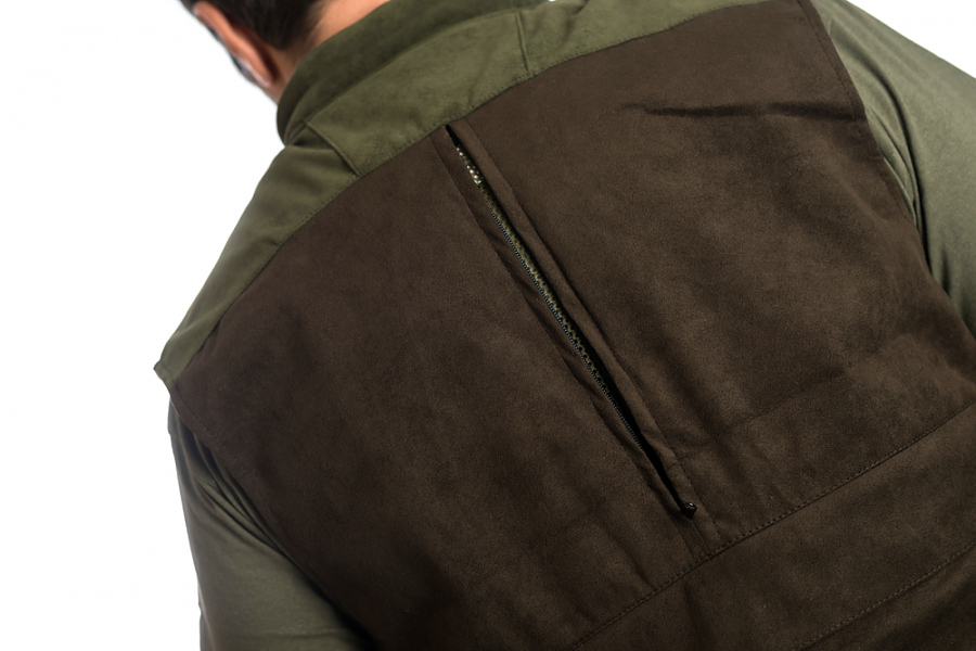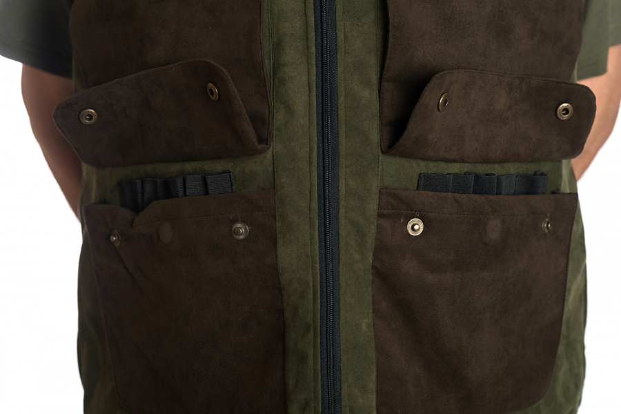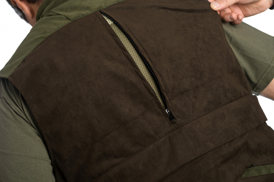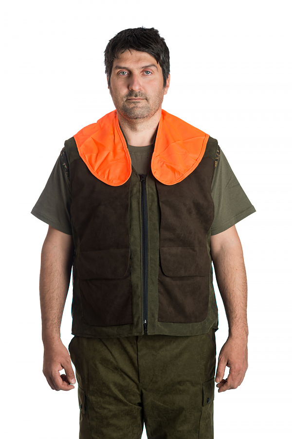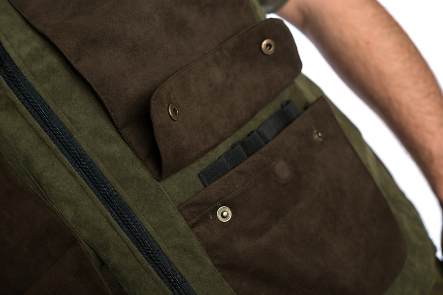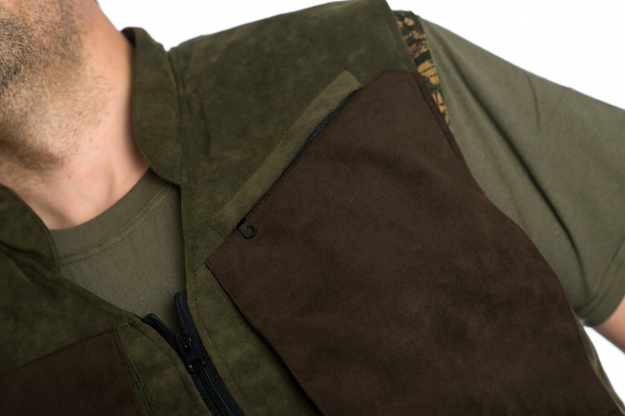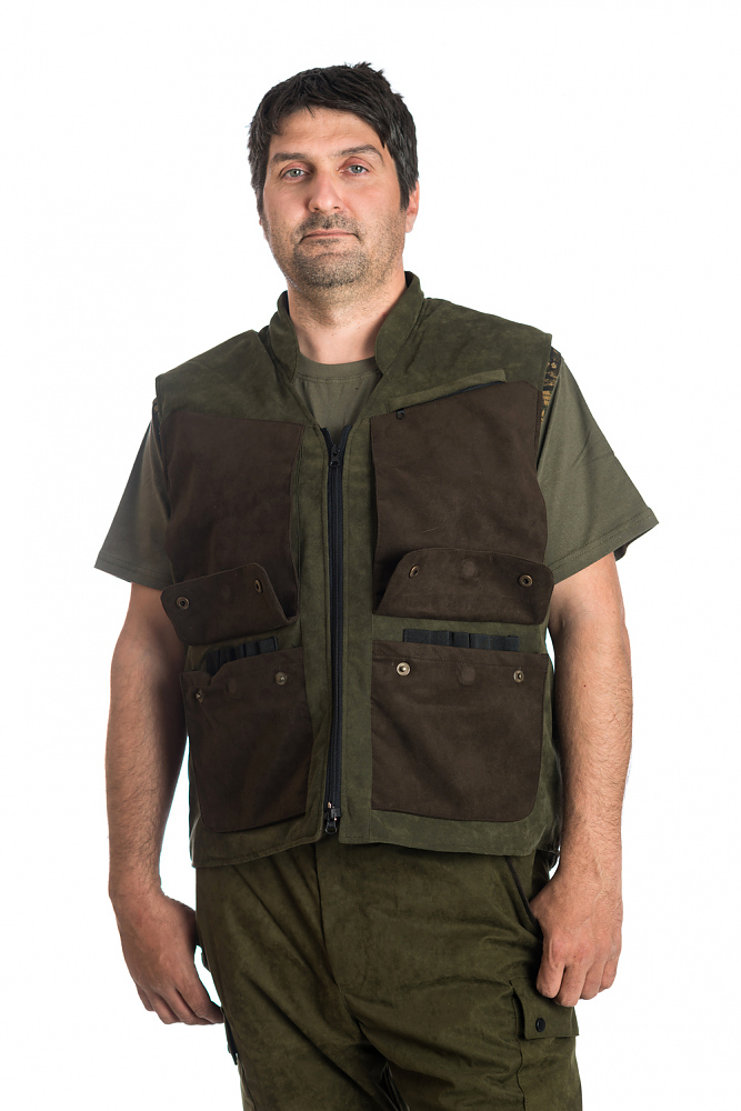 Ловен елек с магнити, изработен от плат Алкантара, с подплата от мрежа и памучен хастар, подходящ за лов от пролетта до есента. Дизайна предлага удобство по време на лов, като следва естественото движение на тялото.