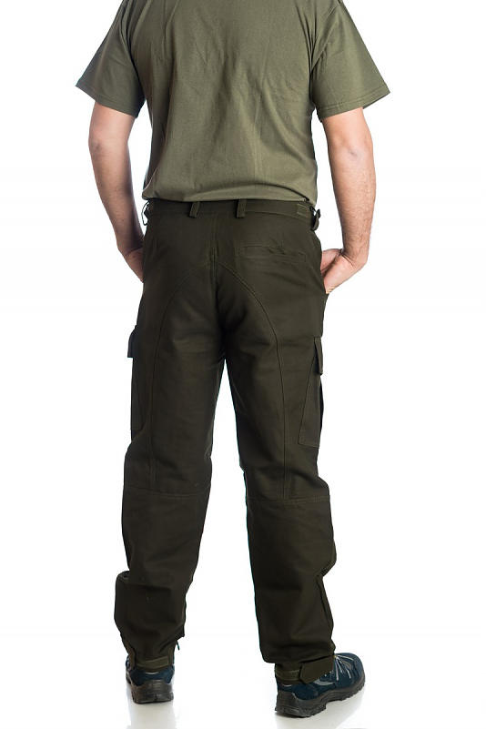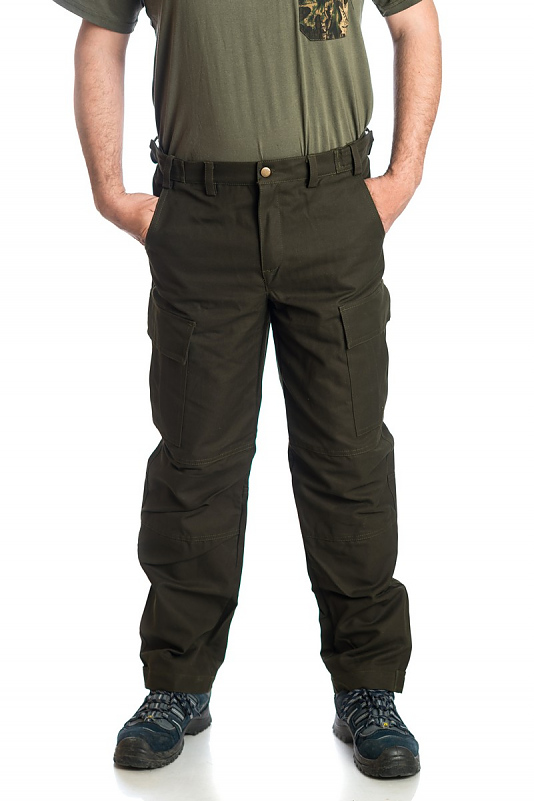 Мъжки ловен панталон модел ПИРИН, изработен от плат 100 % памук, подходящ за лов през пролетта и есента. В областта на коленете и задната част има срязване за осигуряване на по-добър комфорт при движение
