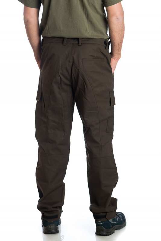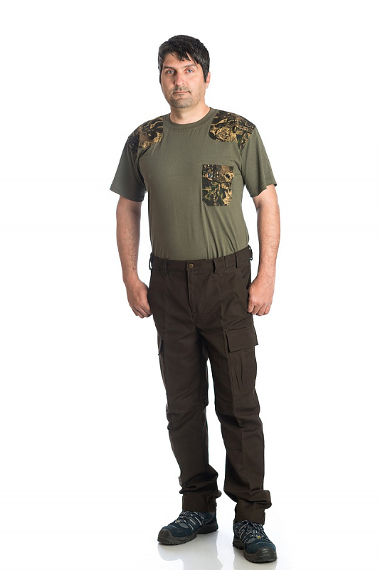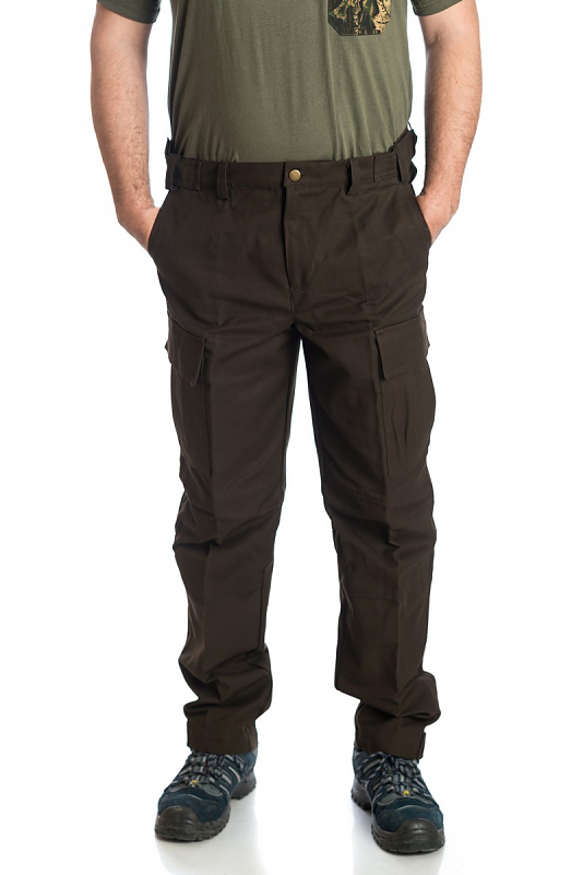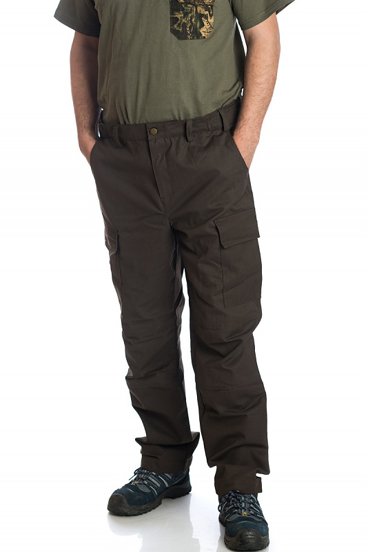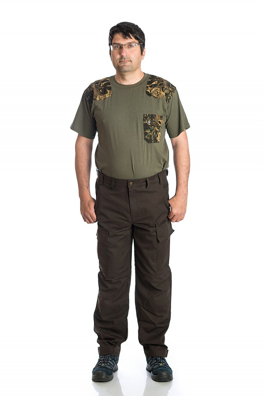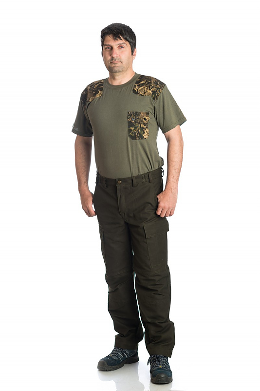Мъжки ловен панталон модел ПИРИН, изработен от плат 100 % памук, подходящ за лов през лятото. В областта на коленете ;и задната част има срязване за осигуряване на по-добър комфорт при движение.