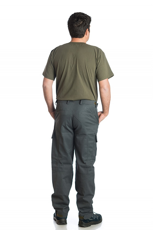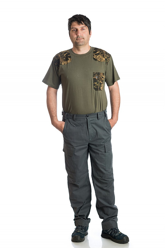 Мъжки ловен панталон модел ПИРИН, изработен от плат 100 % памук, подходящ за лов през лятото. В областта на коленете ;и задната част има срязване за осигуряване на по-добър комфорт при движение.