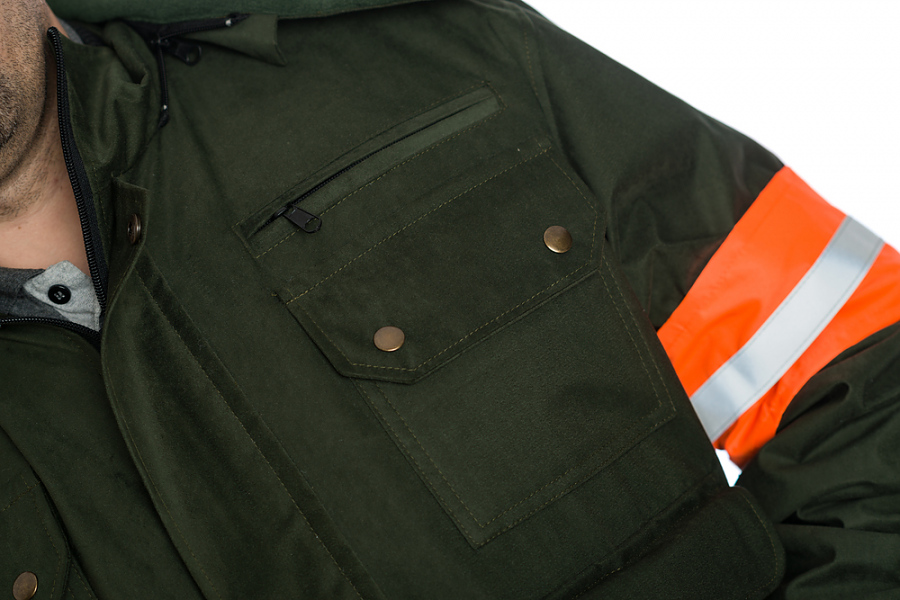 Мъжко ловно яке модел ХЪНТЪР, изработено от плат с мембрана, с топла поларена подплата / 330 гр./, подходящо за лов и спорт през цялата година.