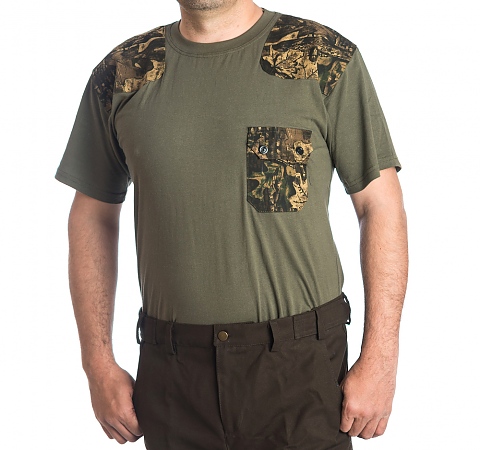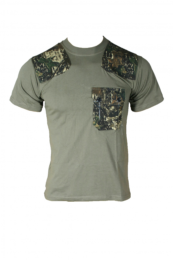 • Платки на раменете и джоб с капак с копчета от плат камуфлаж Тъмна гора